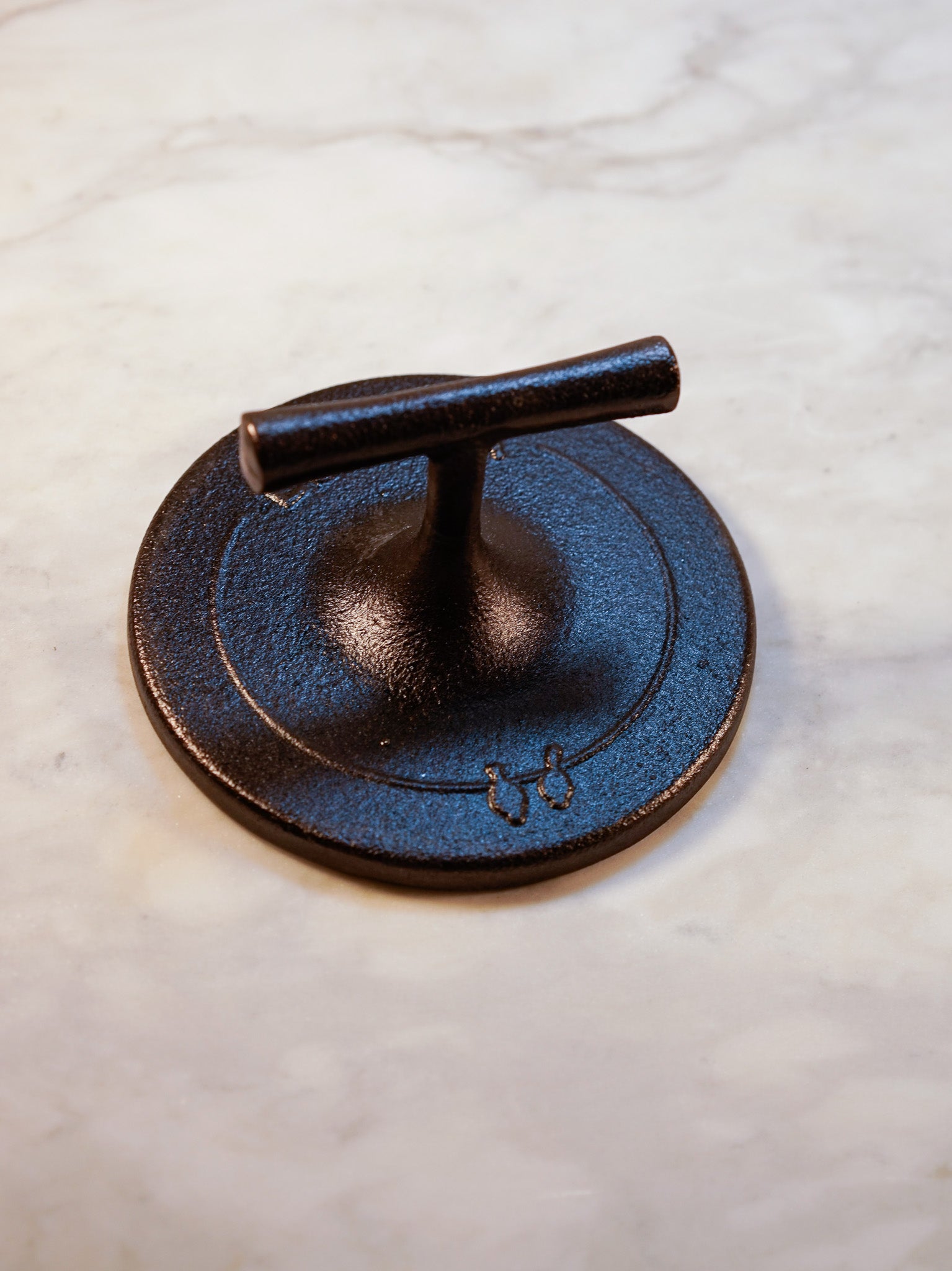 En rejäl, svensktillverkad burgarpress med bra tyngd. Ligger skönt i handen så att det går enkelt att "smasha" sina burgare.