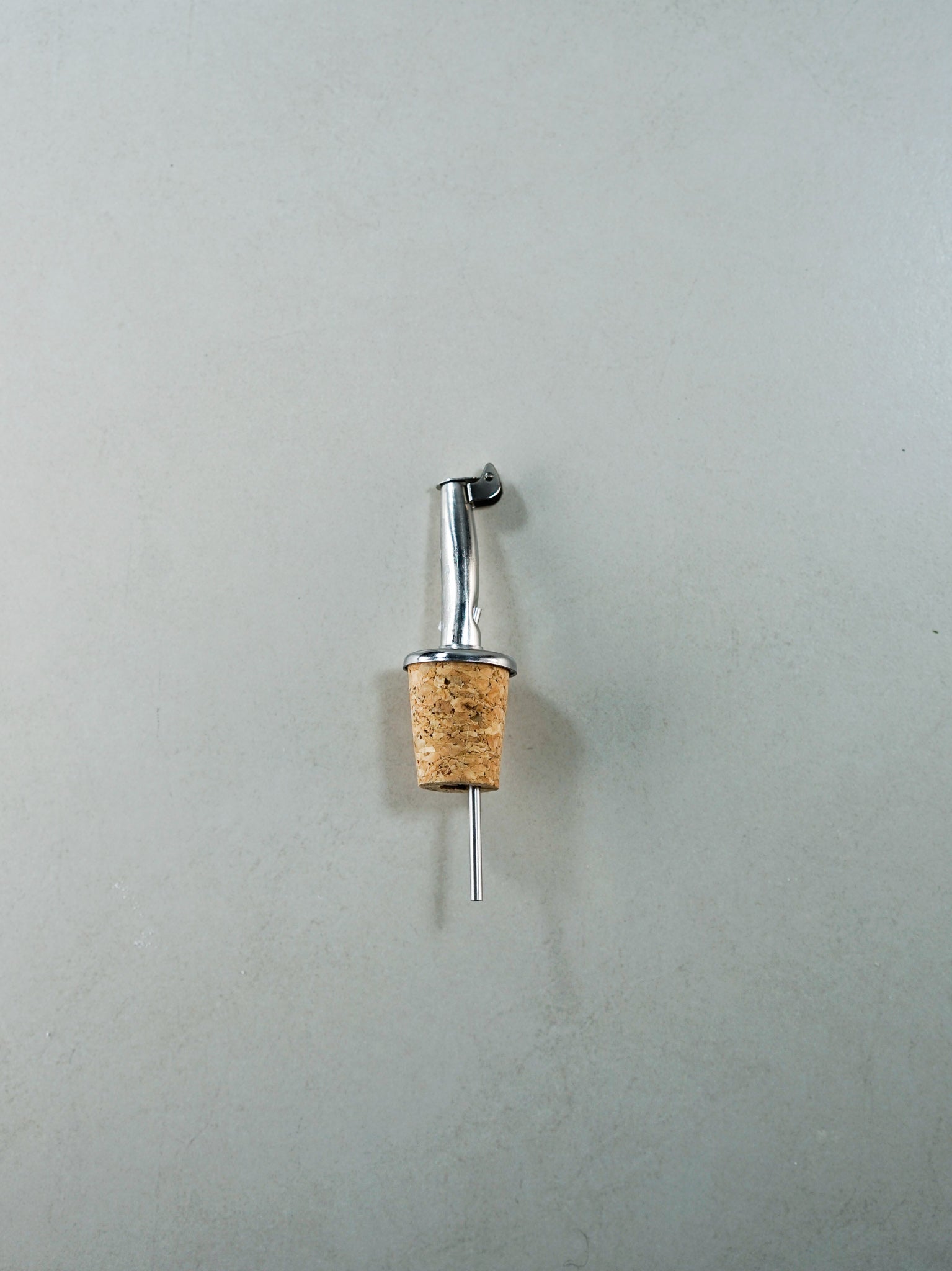 A cork and stainless steel drip cap with a small lid that opens and closes when pouring. Cork is environmentally friendly and much better than plastic. Durable drip cap for different bottles, e.g. olive oil, vinegar and others.
