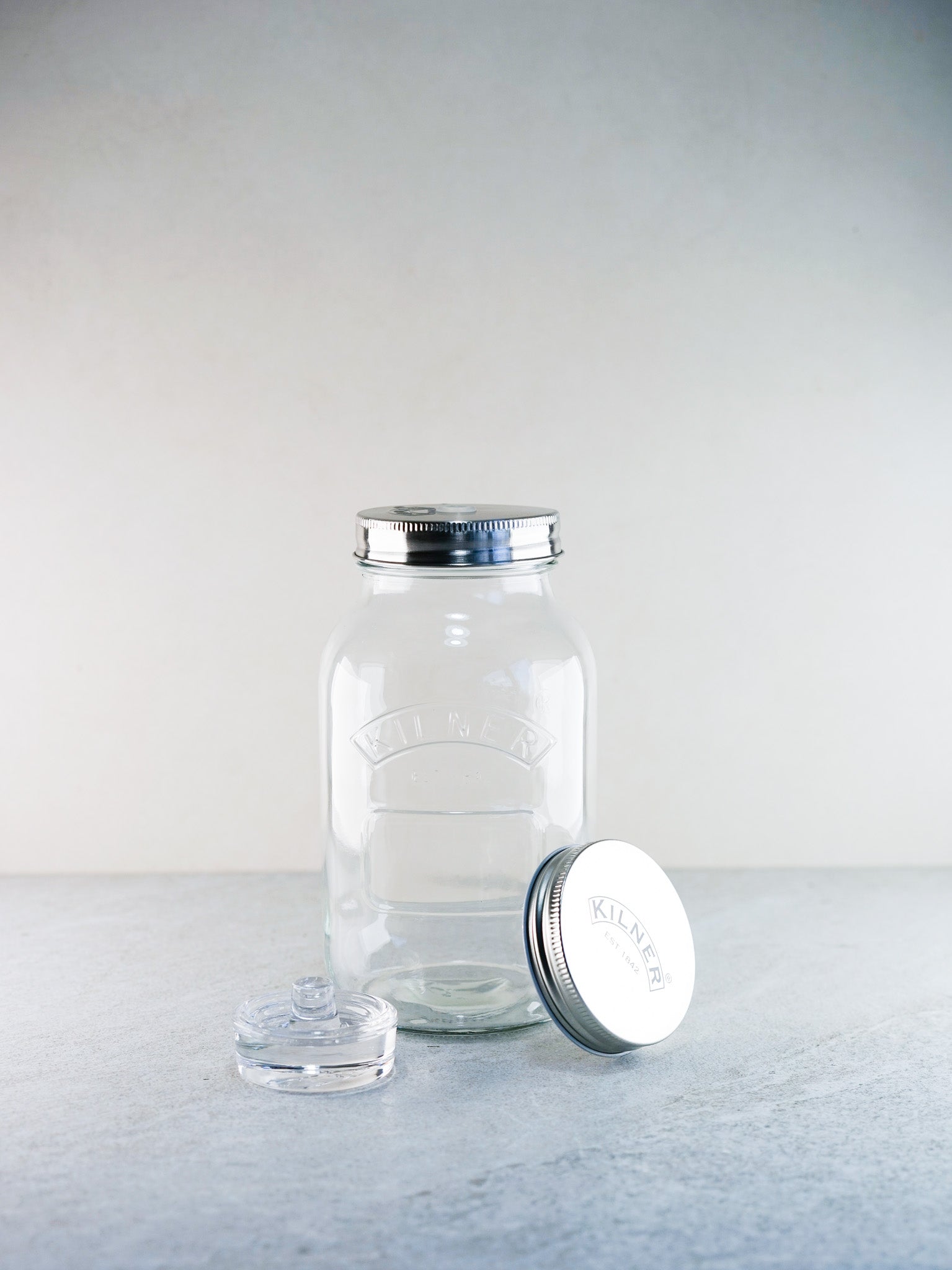 Two smaller jars for fermentation. Perfect as you can change to a tight lid when the fermentation is finished, so you can store your pickles in the same jar. Fermentation is easy and smooth with smaller jars. Fermentation set with weights, baby lids and tight lids. Ferment at home in your own kitchen, it's really easy. Kilner fermentation with weights and lids. 2 fermentation jars from Kilner.
