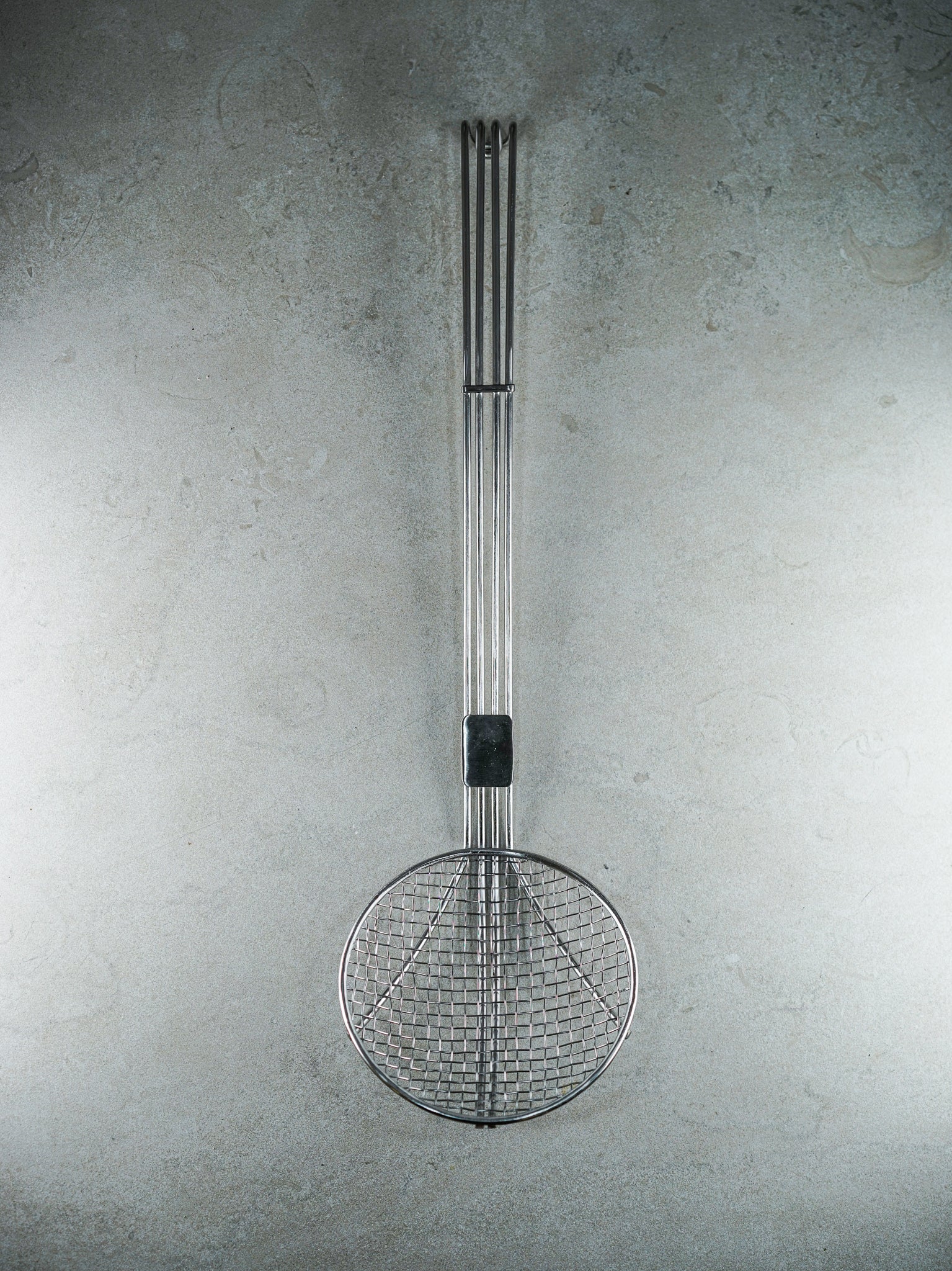 A stainless steel float spoon for frying. A floating ladle can still be used as a slotted ladle. Slotted ladles and float ladles can be used to fry french fries or tempura, but also to skim off broth and pick up dumplings and body cakes to be boiled in water. Flttyrslave is a practical kitchen utensil in your kitchen at home.
