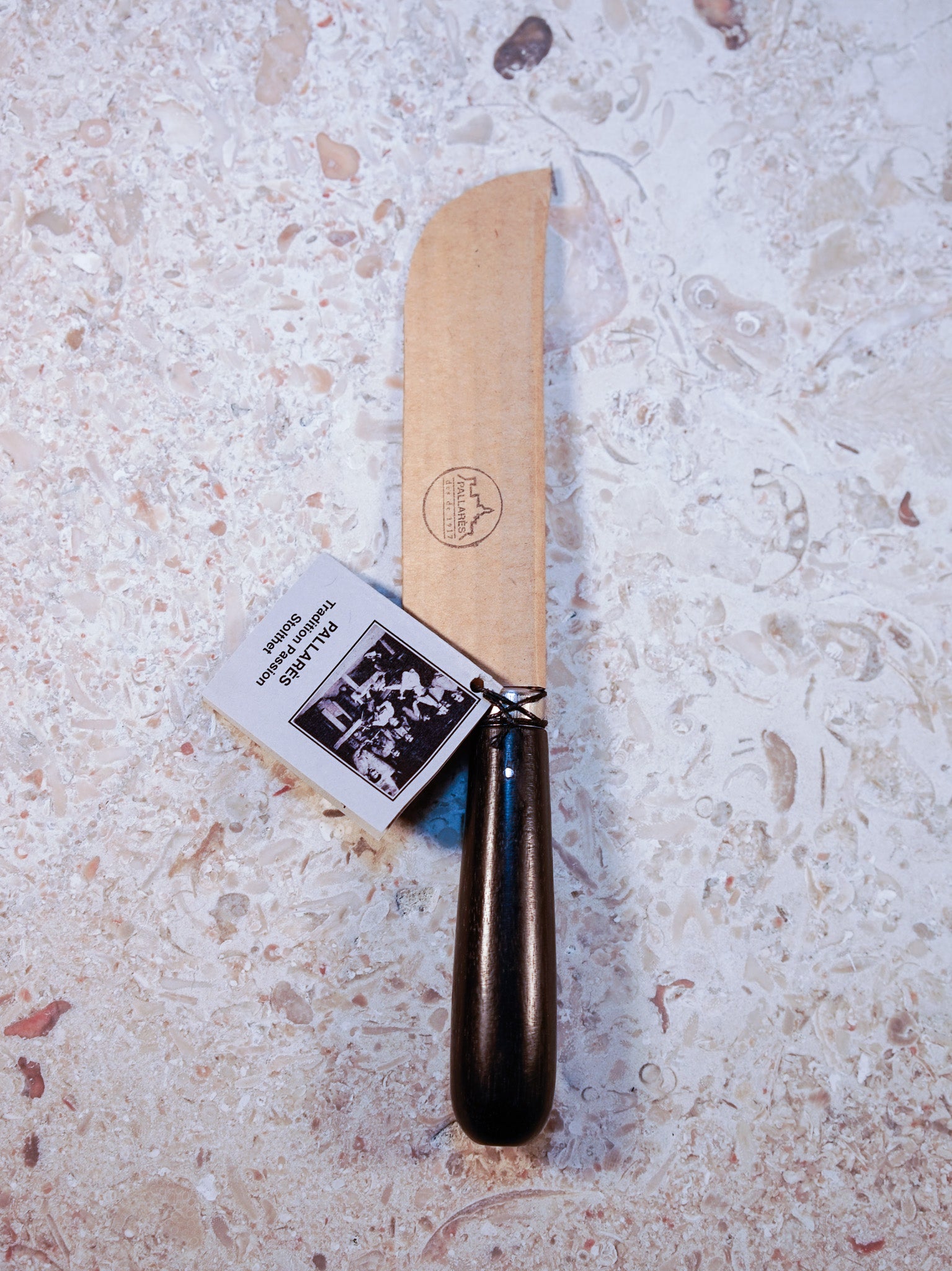 Svart hantverkskniv från det anrika företaget Pallarès i norra Spanien. Mina utan konkurrens härligaste knivar i köket. Har haft flera stycken i över 30 år och de blir bara vackrare med åren.