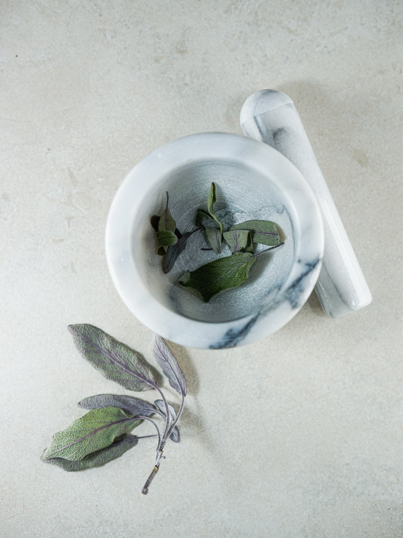 A smaller marble mortar for spices or herbs. Mortar cardamom for your cardamom buns with the mortar. Mortars are good for breaking up spices so that the flavor is extracted. Marble mortar with lovely weight. Small marble mortar that fits in most kitchens for grinding dried spices and also for grinding pesto. You can make homemade pesto with a mortar, that's how they do it in Italy.