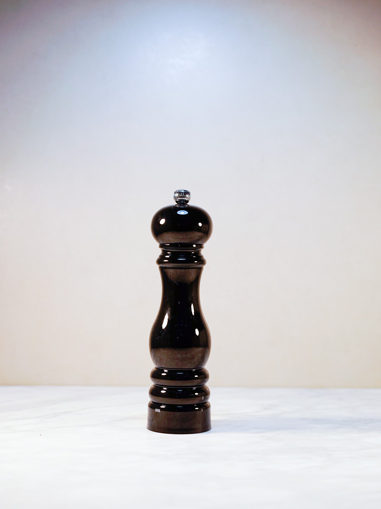 En kolsvart, blank pepparkvarn, lagom hög att stoltsera på köksbänken! Jag brukar ha svartpeppar i min men det väljer man självklart utifrån vad som är ens egen favoritpeppar.