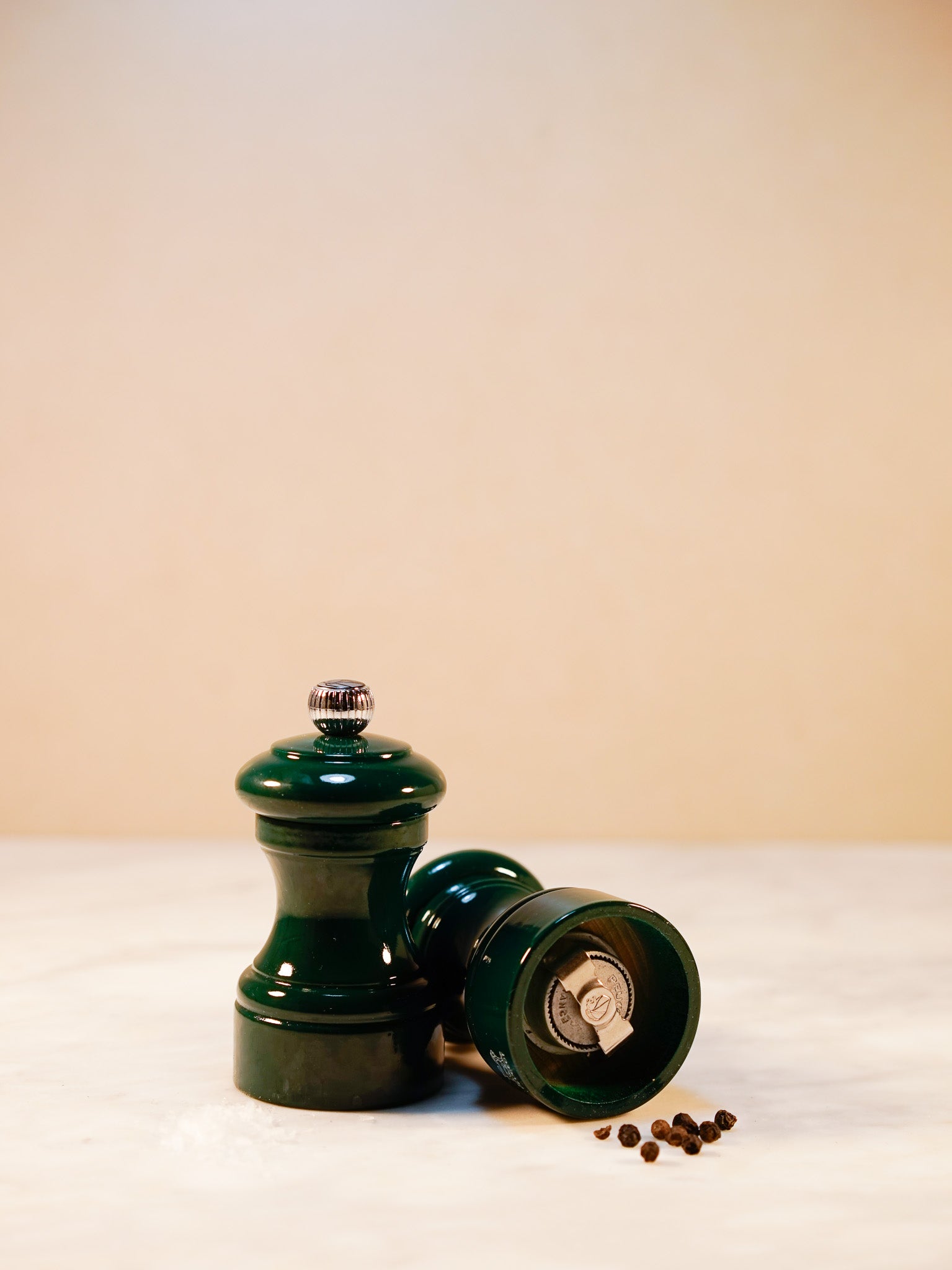 Salt och pepparkvarnar i par från franska Peugeot. Med ett kvarnverk anpassat för vardera krydda. Ett litet S och ett P uppe på knoppen visar tydligt vilken kvarn som innehåller vad. Höjd: 10 cm. Tillverkad i trä med höglackad finnish. 5 års garanti.