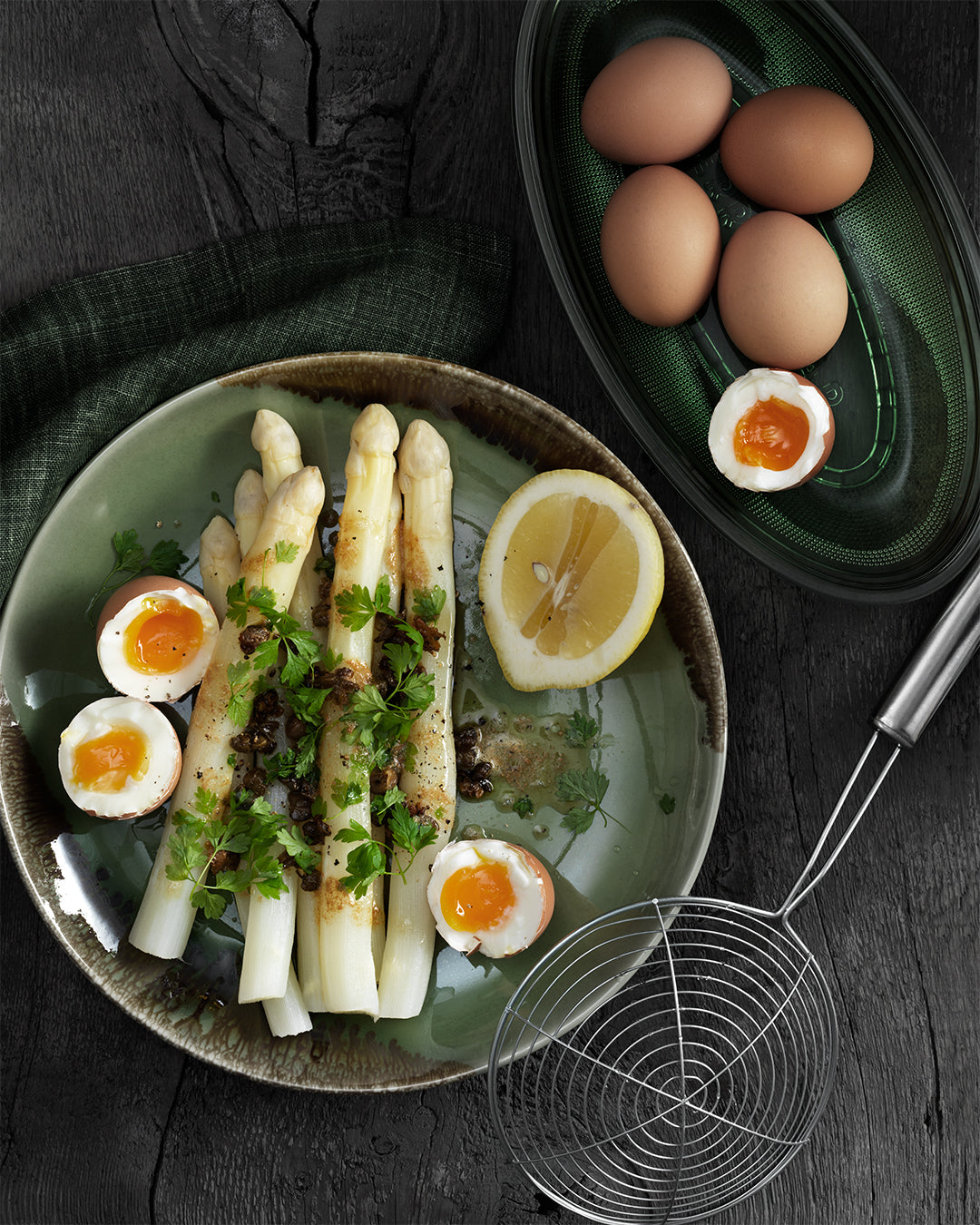 Skalar enkelt både vit och grön sparris. Sparrisen läggs i skalaren och sedan drar man från toppen och nedåt. Vit sparris har ett tjockt, nästan läderartat skal som behöver tas bort väl då det sitter en viss beska i skalet. Grön sparris behöver inte skalas men det är ändå lite elegant.