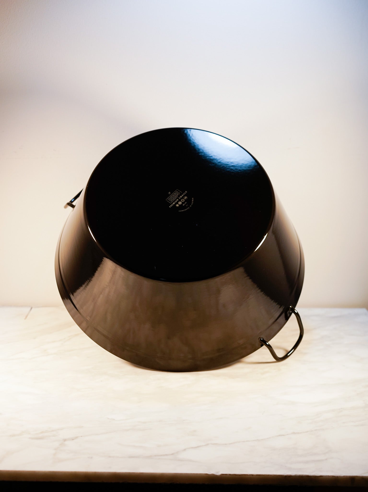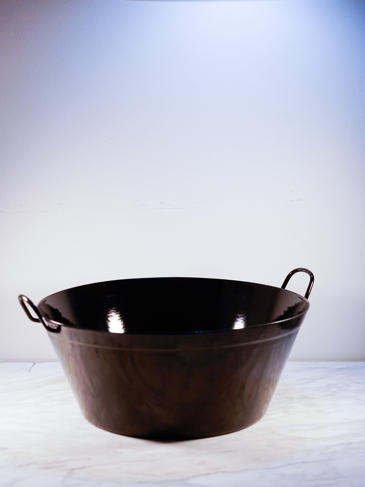 En riktigt vid och rymlig gryta för storkok. I Österrike används de till att fritera i men själv gör jag till exempel en stor pasta till många eller en rejäl omgång äppelmos. Grytan är även generös att vid middagar där man själv får hämta sin mat vid spisen. En soppa för många som serveras med ett par generösa bröd och ostar till exempel. Denna gryta kommer utan lock.