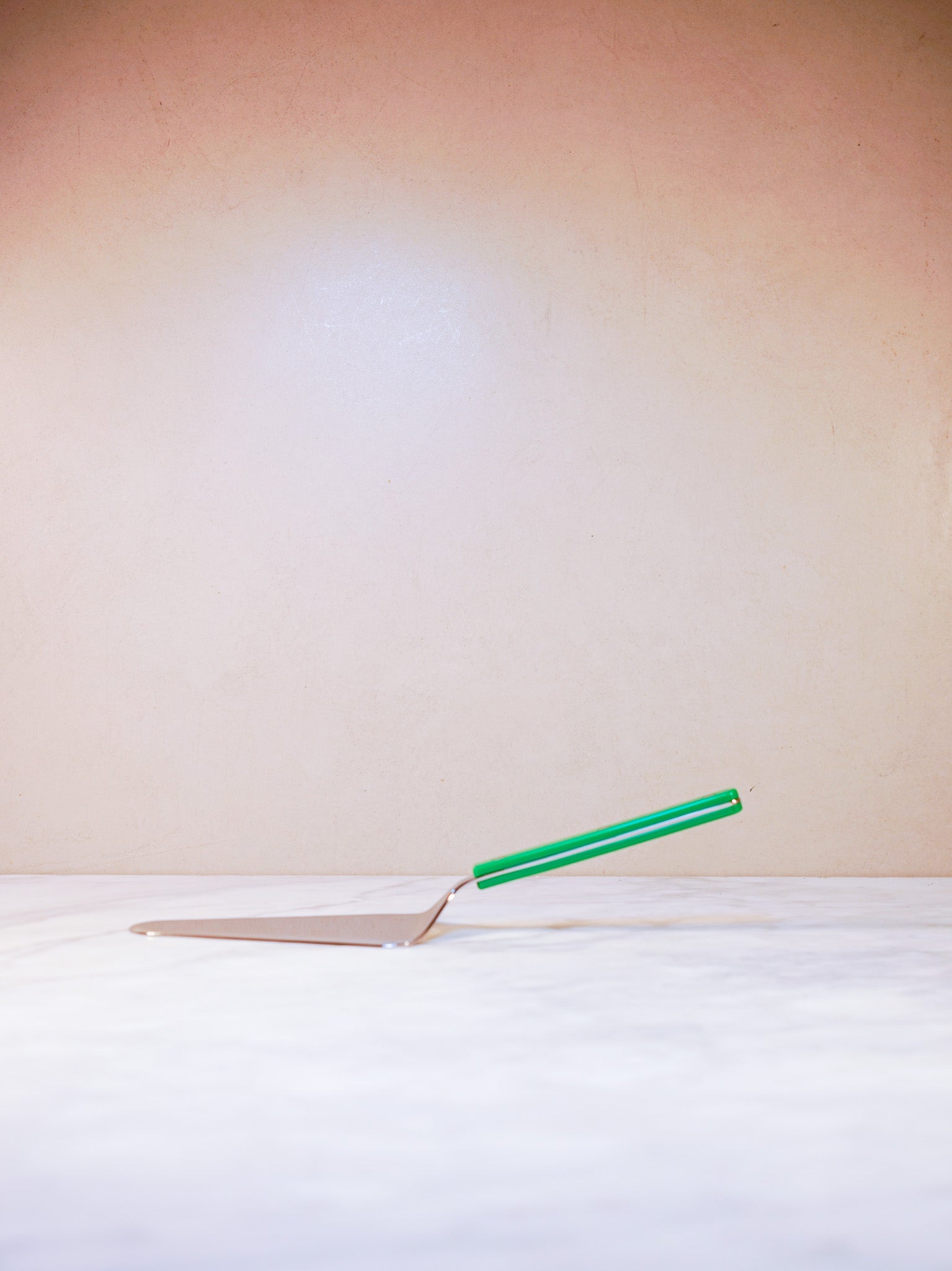 En tårtspade för alla tillfällen. Knallgrön till jordgubbstårtan eller i färgen "Ivory" till mer eleganta tårtor. Stabil med bra tyngd.