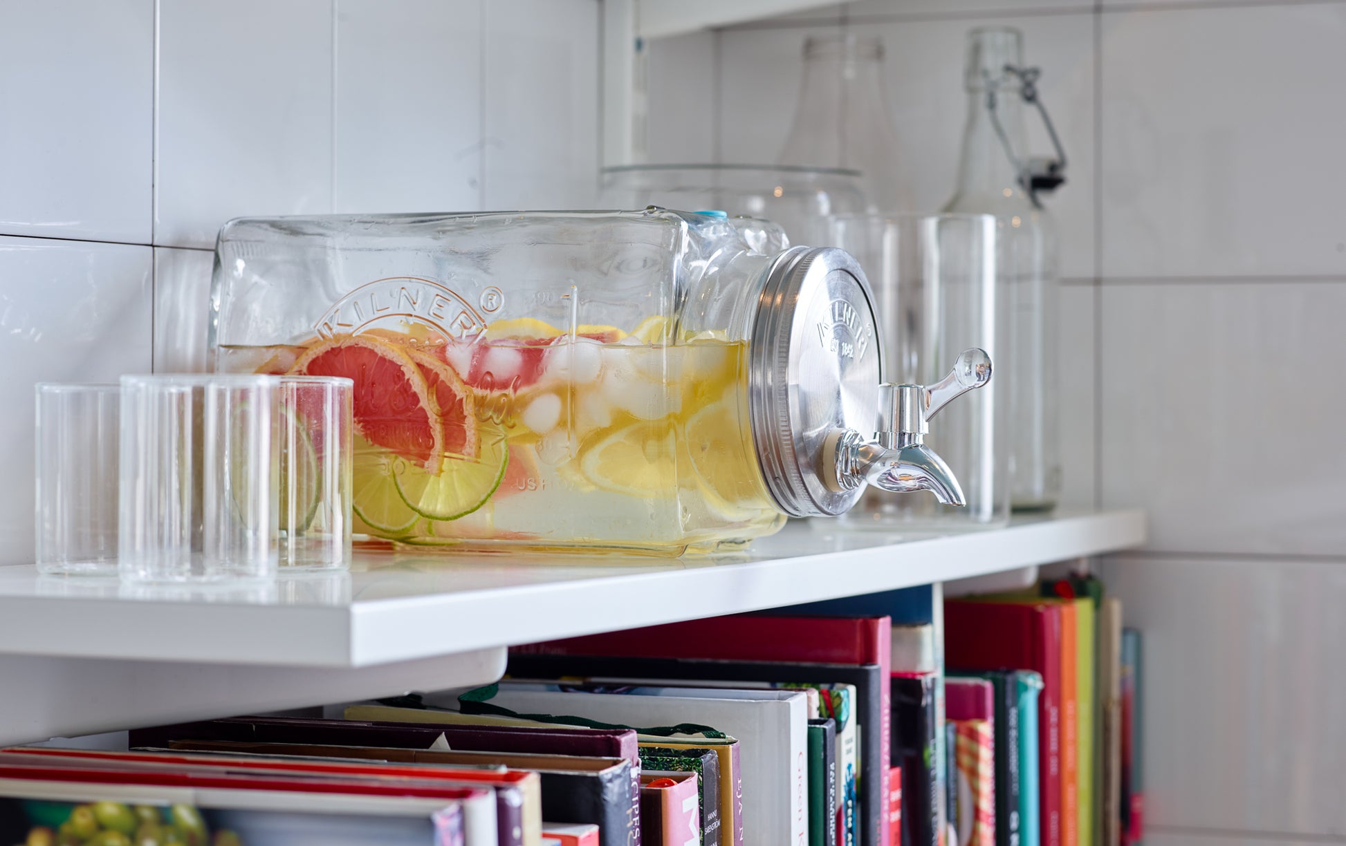 Water containers that can easily be stored in the fridge with water or juice or lemonade in them. Kilner water containers can also be called water dispensers or dispensers. Keeps the water nice and cold and nice to display at a party or buffet. The container is made of durable glass and stainless steel. Suitable for having the container in a cafe.