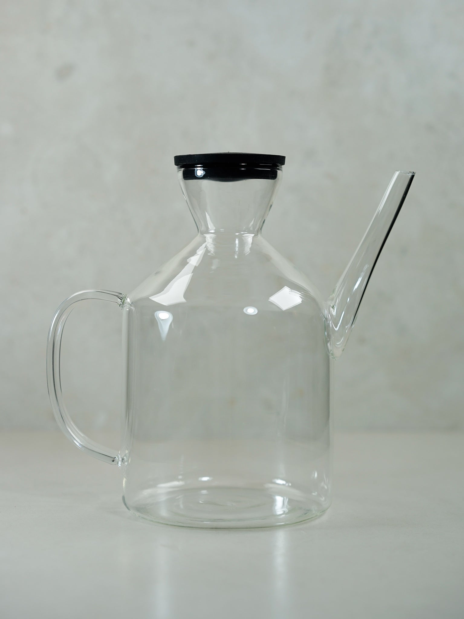 Hemma i mitt kök vill ja gärna ha olivoljan framme och nära till hands. Det går åt rätt mycket hos oss så en rejäl glaskanna är perfekt. Ibland lägger jag i kryddor och vitlök för att ge oljan smak. Den kan även användas till saft för två, nån snygg infusion eller till buljong som ska serveras snyggt vid bordet eller hällas i pö om pö när risotton tillagas.