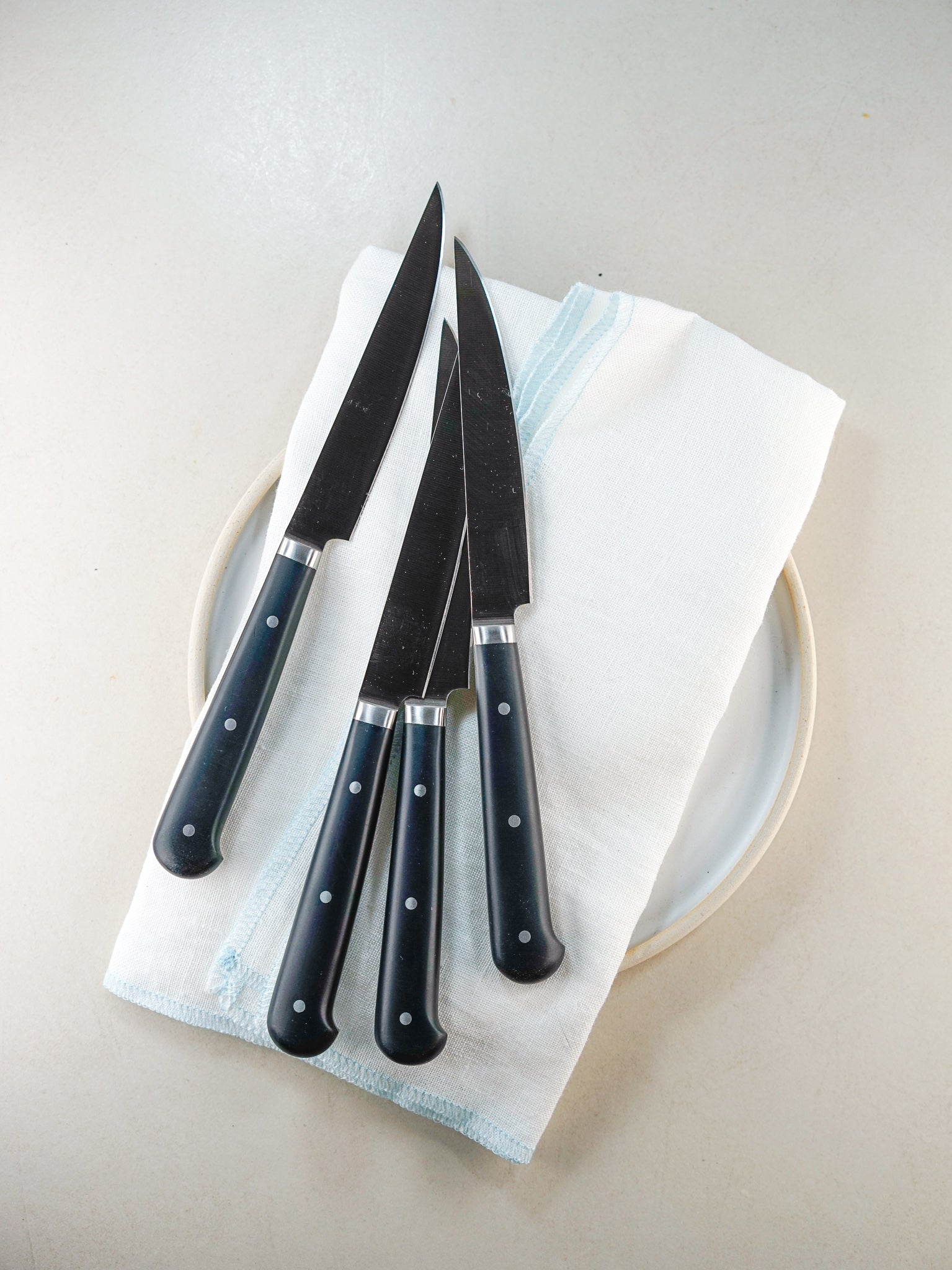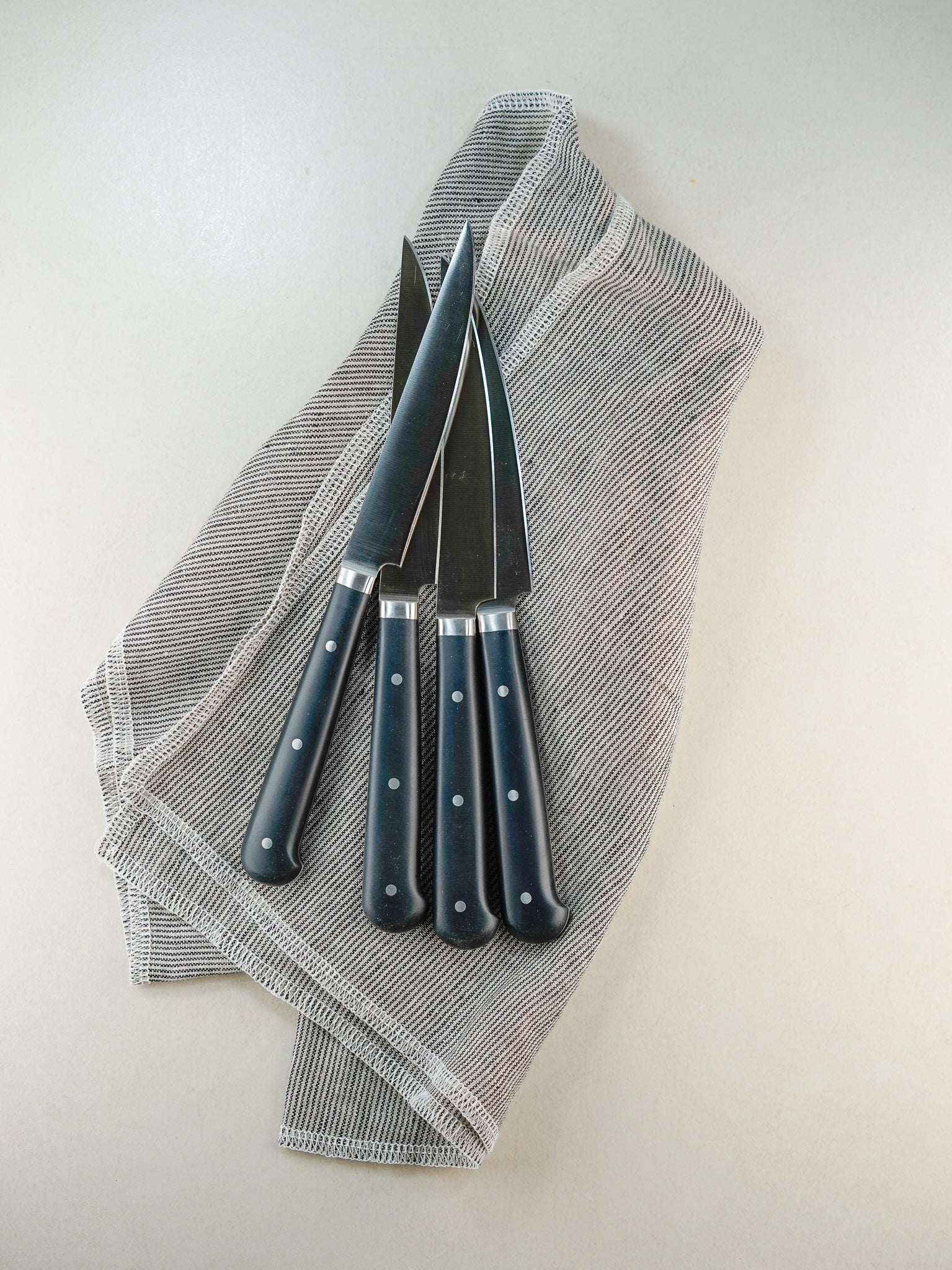När jag åt på en klassisk krog i Rom så var det dukat med dessa knivar. Äntligen har jag hittat den ultimata stekkniven! De blir verkligen bara snyggare ju mer de används. När jag sedan skar köttet så det den skönaste kniv jag hållit i som dessutom var extremt vass. Knivarna, som är otandade, kan lämnas in på slipning när det behövs.