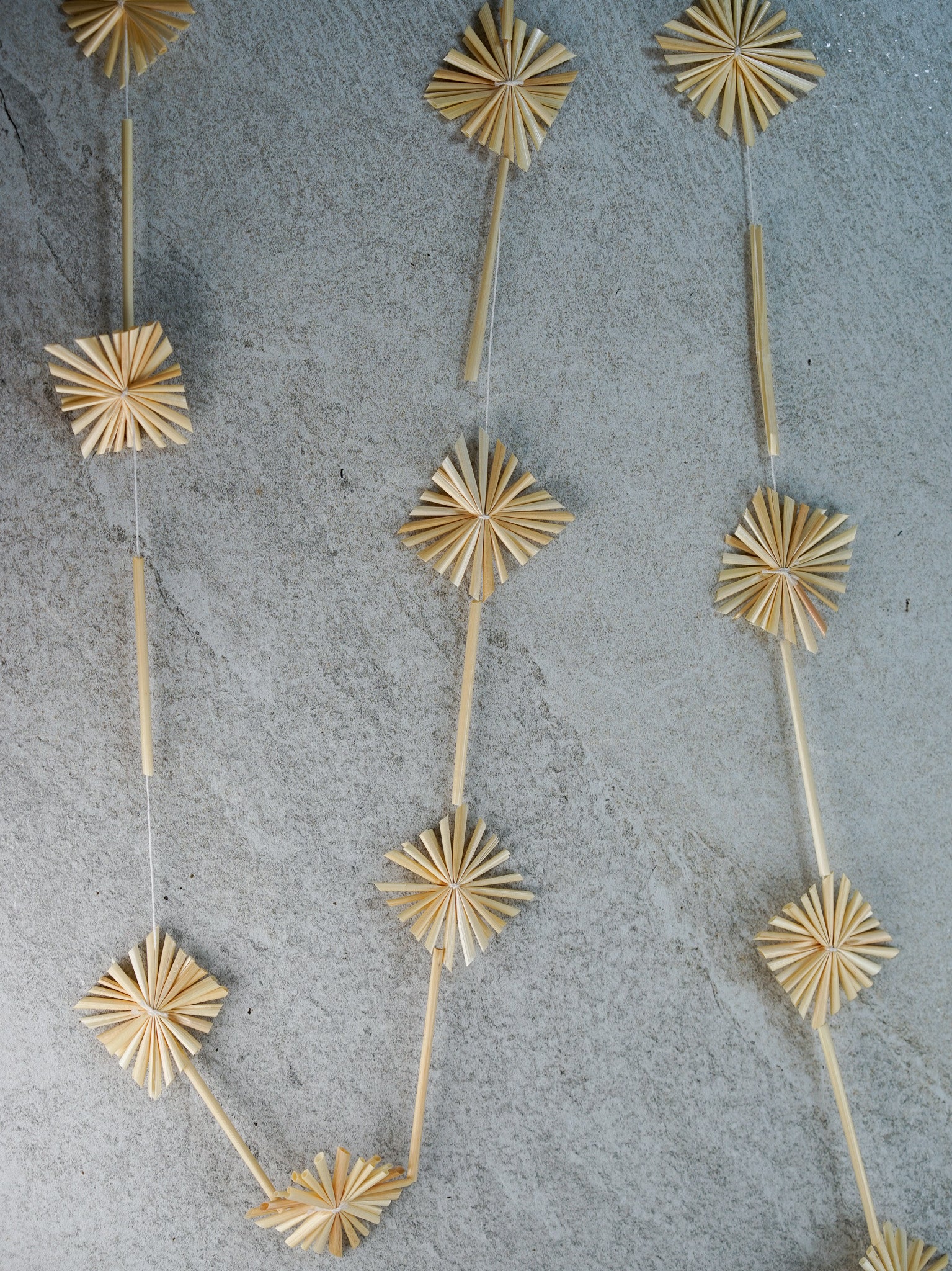 Klä granen med de fina små halmstjärnorna som sitter på en lång, tunn tråd. Även fin att hänga i ett fönster eller i en dörrpost som en