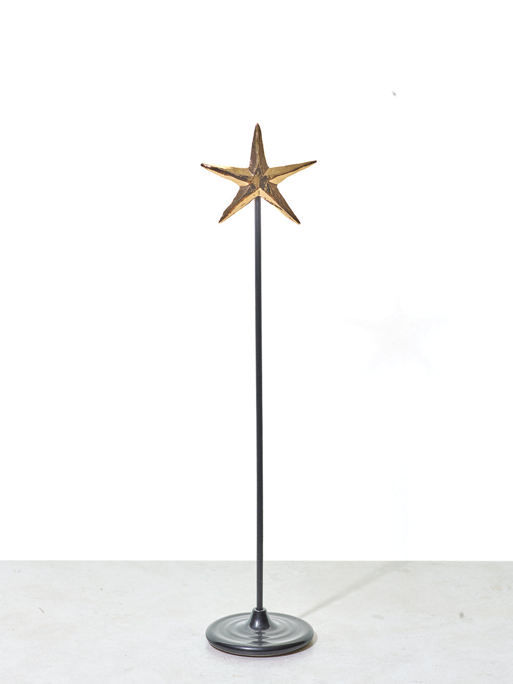Det här är för mig det enda julpynt jag varje år verkligen måste ställa fram! Den vackra stjärnan tillverkas för hand med drejad, gedigen, svartglaserad fot och träpinne som enkelt fästs i foten. Stjärnan är formad för hand och sedan förgylld. Ewa-Marie Kothe är en av vår tids duktigaste keramiker. Hon är verksam på Gotland och medlem av konsthantverkskollektivet Blås & Knåda i Stockholm. Som en av få återförsäljare gläds vi på Tools by Landqvist åt att få ha dessa ljuvliga konstverk i vårt sortiment.