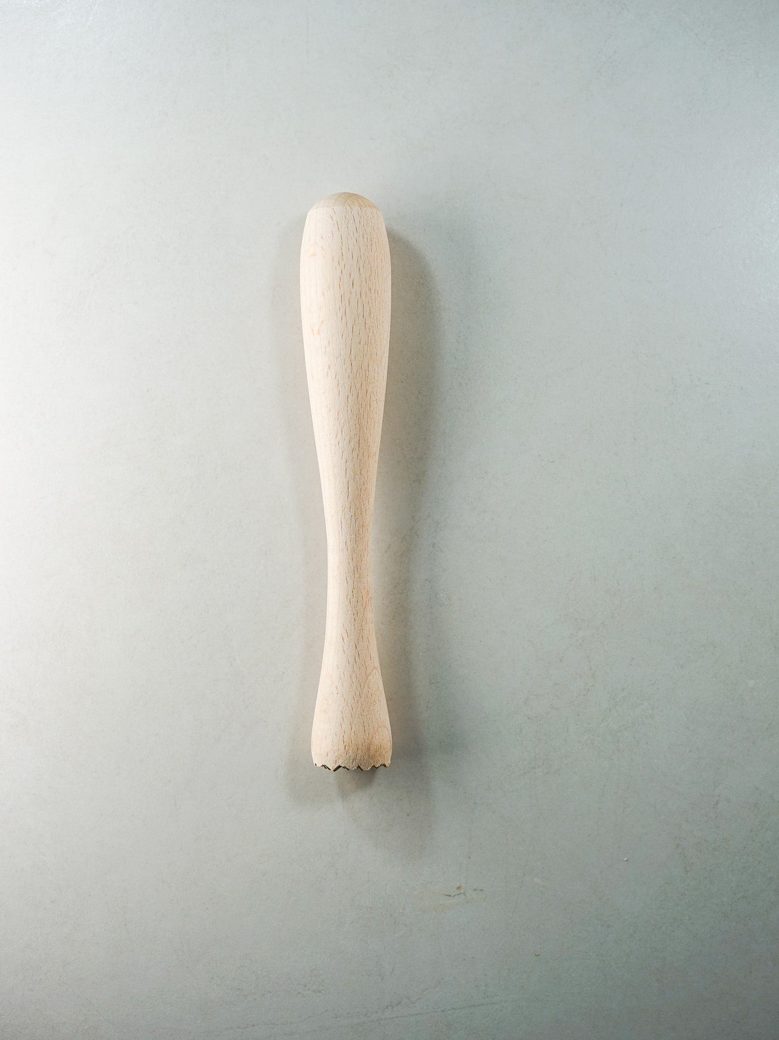 Fakta: Muddlare av björk. Tillverkad i Sverige.